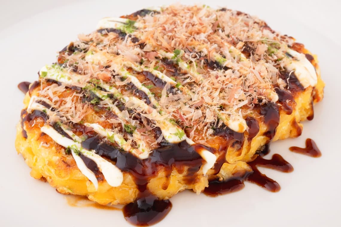 A beloved Osaka soul food, Chibo’s okonomiyaki features a flavorful dashi-infused batter with rich pork flavor. A fruity, rich homemade sauce and a creamy white sauce both add depth to the flavor.