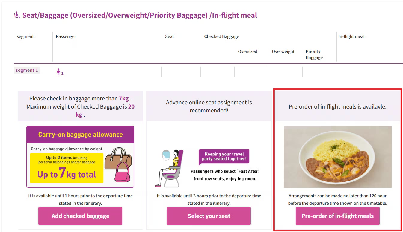 If you have already reserved a flight ticket, please apply via “Click here to pre-order your in-flight meal” above.