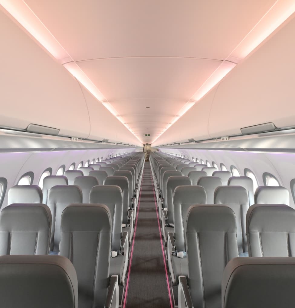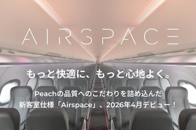 「Airspace」はエアバスの新客室仕様です。Peachでは「Airspace」のPremiumを採用。