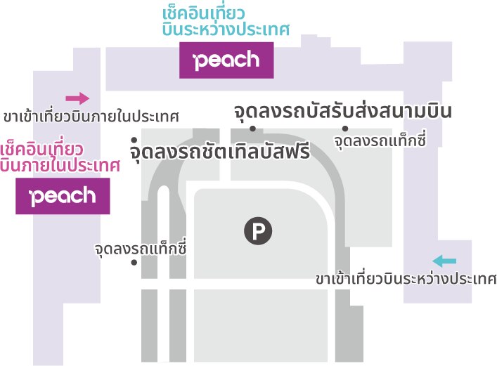 สำหรับผู้โดยสารที่มาโดยรถยนต์ โปรดใช้ที่จอดรถ "P5" หน้าTerminal 2