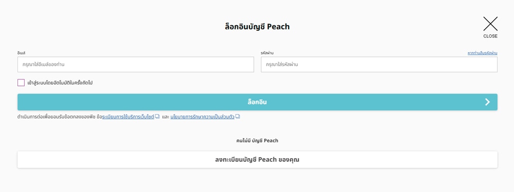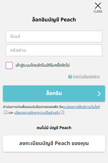 เข้าสู่ระบบ Peach account ของท่าน หากท่านยังไม่มี Peach account ท่านจำเป็นต้องลงทะเบียนก่อน