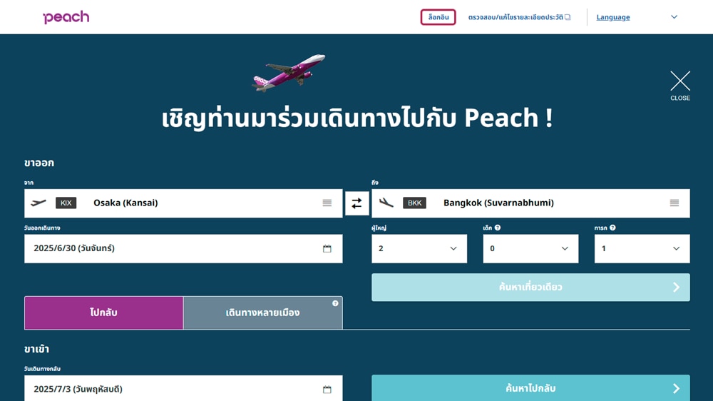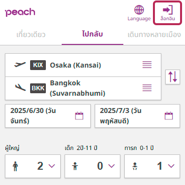 คลิก "ล็อกอิน" ก่อนทำการเช็คเที่ยวบิน